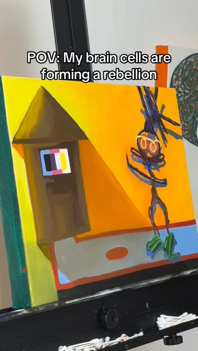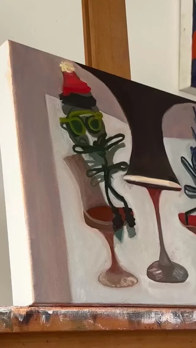 Profound, but not confusing; invoking emotion but not underestimating the Viewer’s intelligence; exploring all possibilities but never straying too far from certainty (or creating new certainties). Using perceived frivolity to make us think about society, politics, relationships and life is my primary focus. I work with wax strings. I use them to create colorful, whimsical people and then they become the subjects of my paintings. The figures have a lot of dimension and really pop off of the canvas. They are fanciful on one hand and cutting on the other. They are smile invoking and thought provoking. They are gibberish and sharply communicative. I happened upon wax strings while playing with my children. They were playing and deeply engaged with making and stacking shapes all the while completely uninterested in what I was doing. So, I experimented. Then I painted. My goal with these is to delight and confuse and to make people stop and consider human expression in a new way!