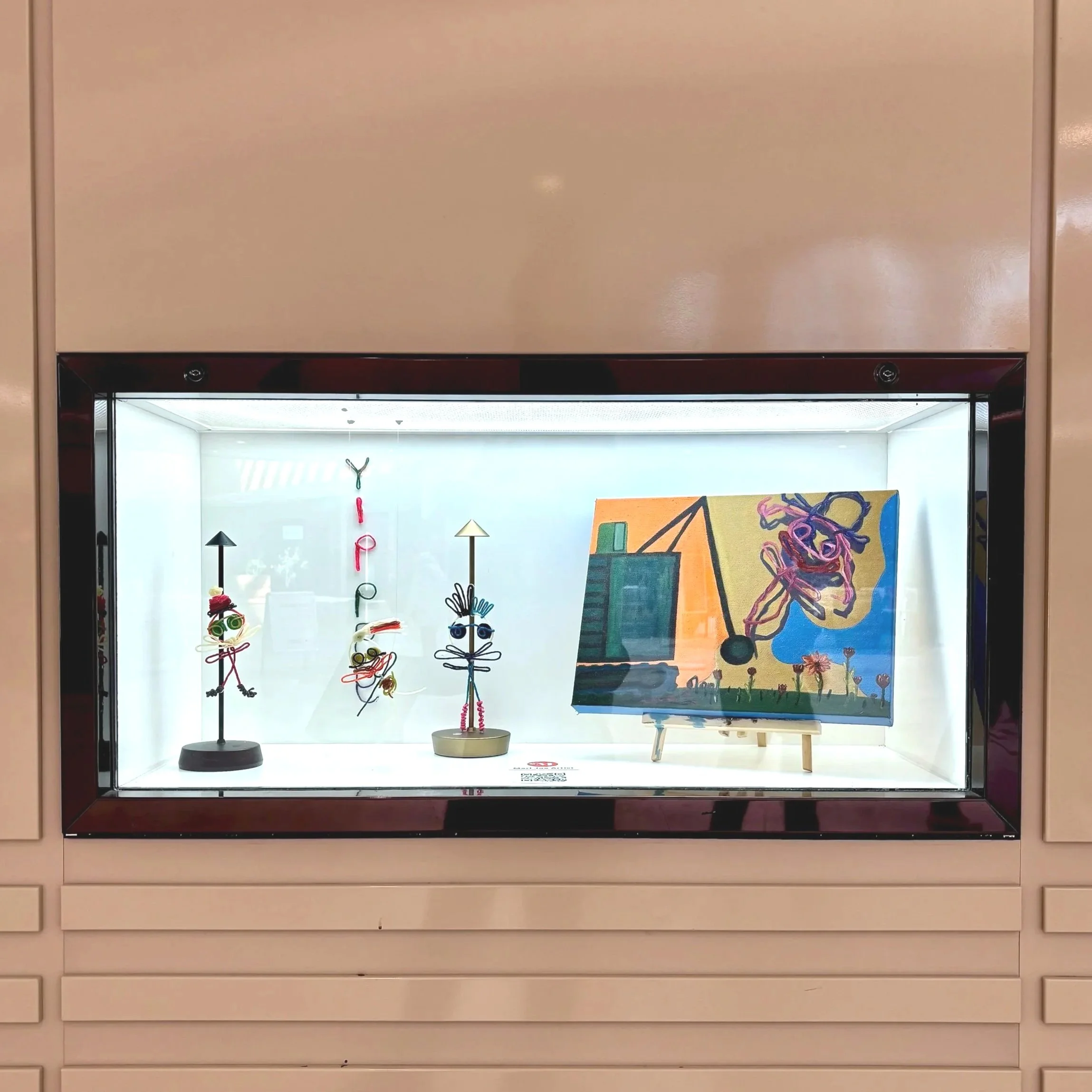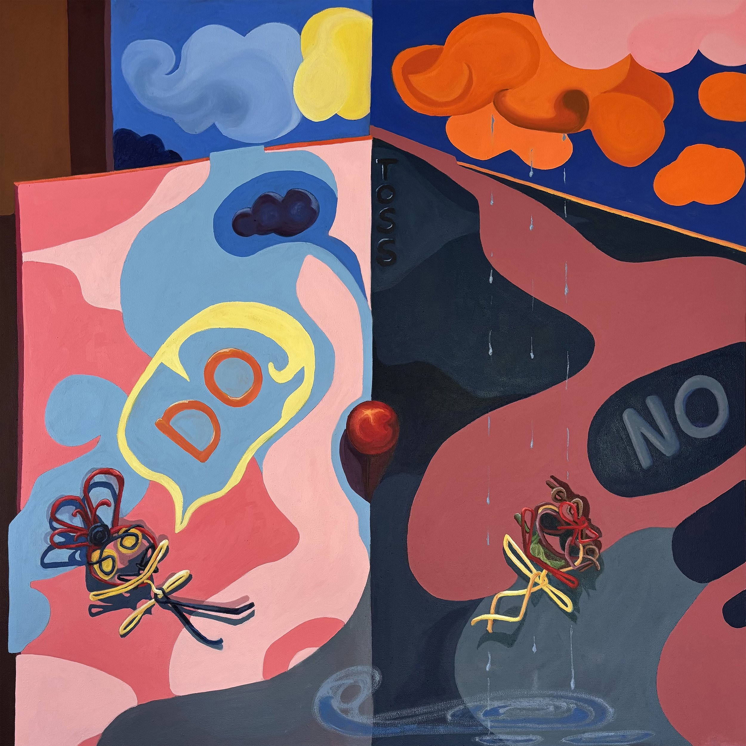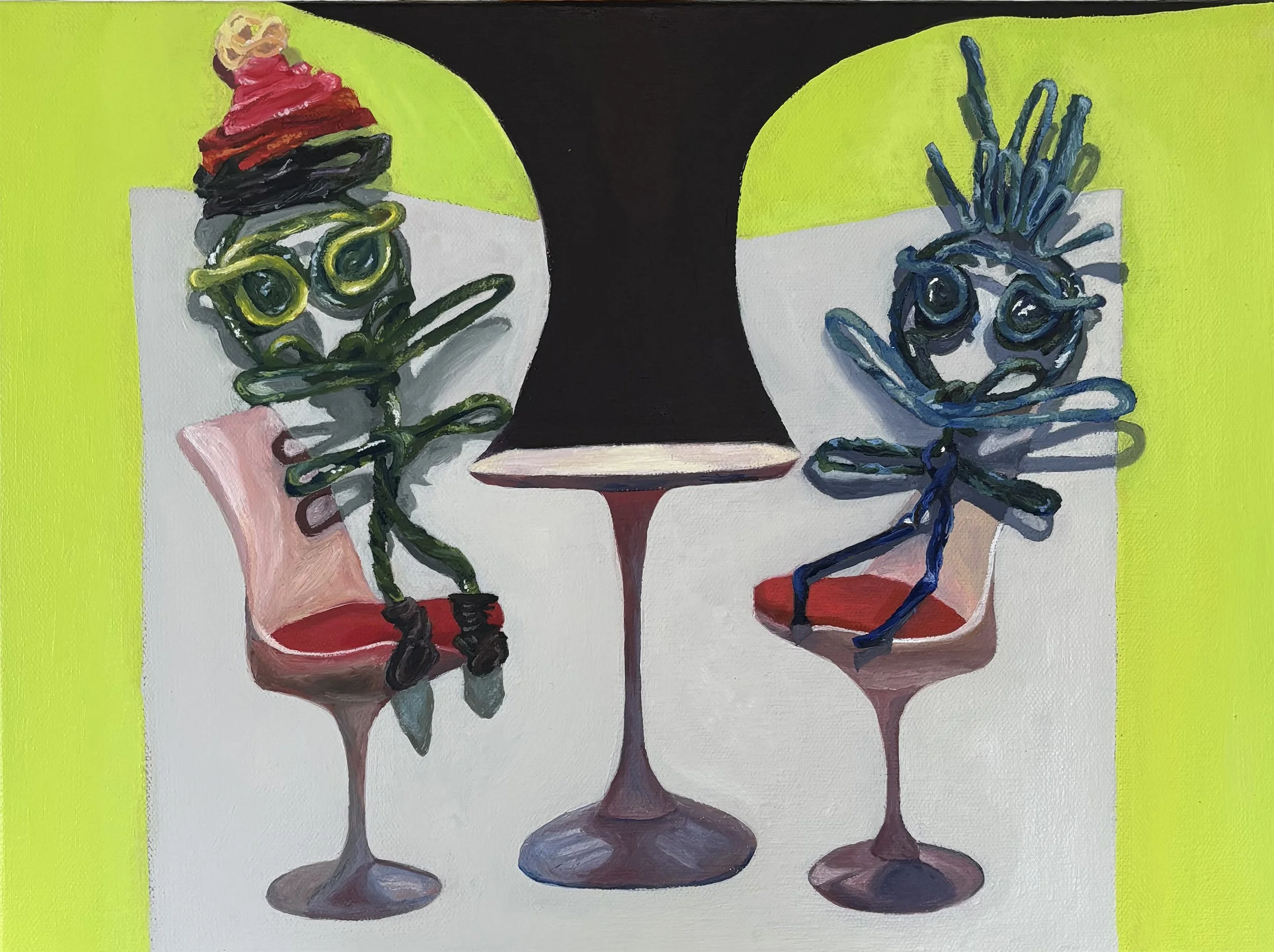 Profound, but not confusing; invoking emotion but not underestimating the Viewer’s intelligence; exploring all possibilities but never straying too far from certainty (or creating new certainties). Using perceived frivolity to make us think about society, politics, relationships and life is my primary focus. I work with wax strings. I use them to create colorful, whimsical people and then they become the subjects of my paintings. The figures have a lot of dimension and really pop off of the canvas. They are fanciful on one hand and cutting on the other. They are smile invoking and thought provoking. They are gibberish and sharply communicative. I happened upon wax strings while playing with my children. They were playing and deeply engaged with making and stacking shapes all the while completely uninterested in what I was doing. So, I experimented. Then I painted. My goal with these is to delight and confuse and to make people stop and consider human expression in a new way!